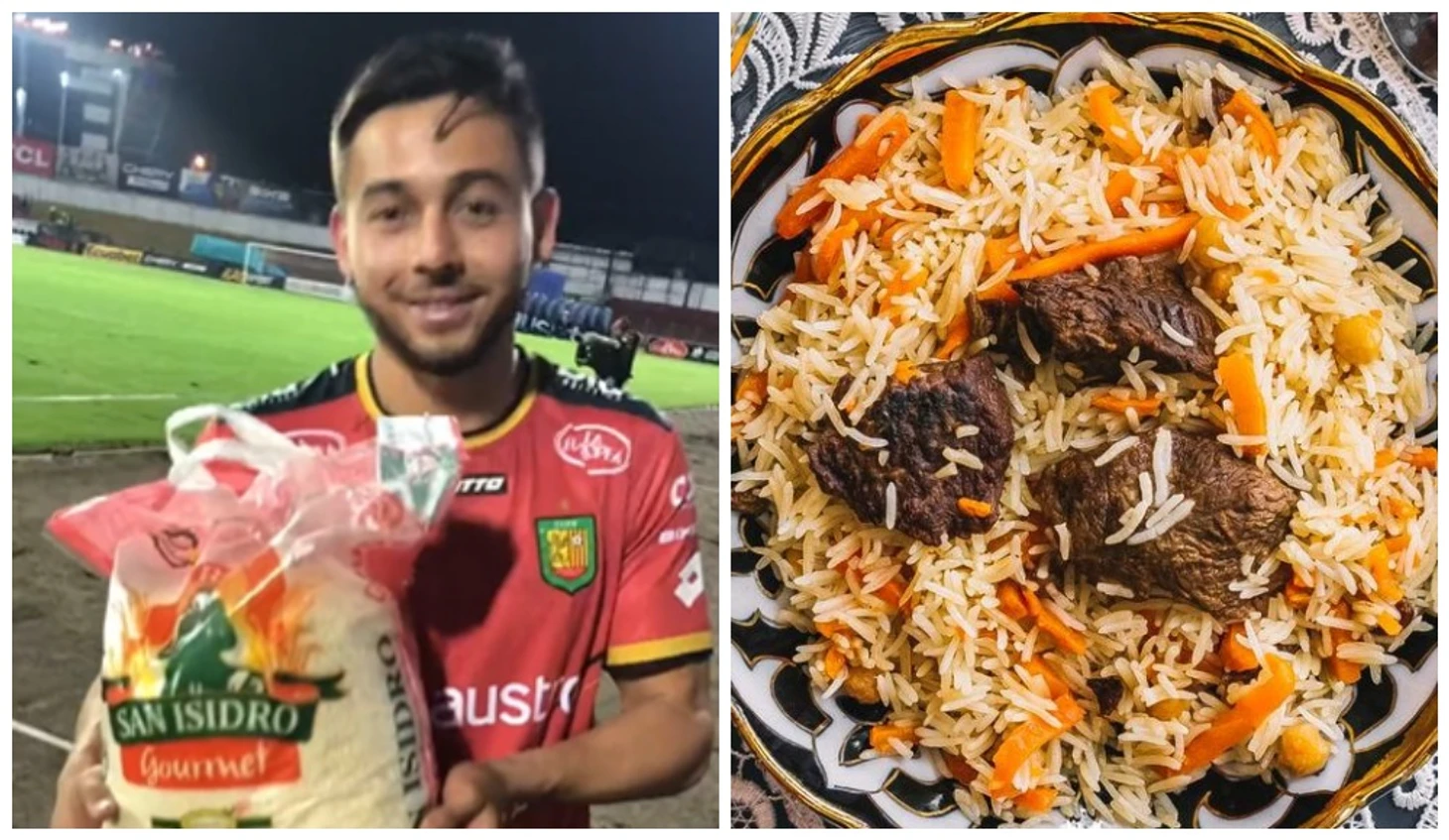 📹Лучший игрок матча чемпионата Эквадора получил ценный приз. Теперь у него есть один из ингредиентов плова