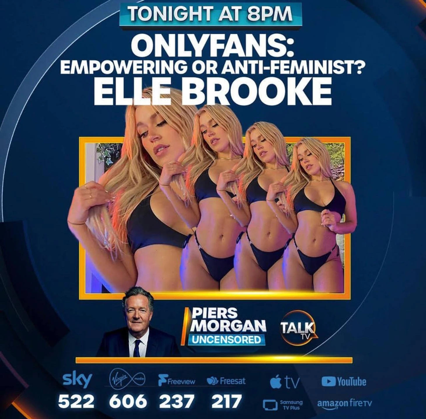В гости к Пирсу Моргану - тому самому, что брал скандальное интервью у Роналду, после которого «МЮ» разорвал контракт с португальцем - на днях пришла модель OnlyFans Элли Брук.