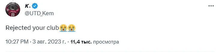 К сожалению для болельщика «ПСЖ», он нарвался на находчивого фаната «Юнайтед», который ответил ему: «Отказал твоему клубу».