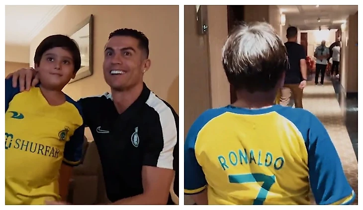 Но одному юному болельщику повезло больше остальных – его в свой номер пригласил сам Роналду, поскольку ранее мальчика не допустила до португальца охрана. Судя по кадрам, мальчуган остался в диком восторге.