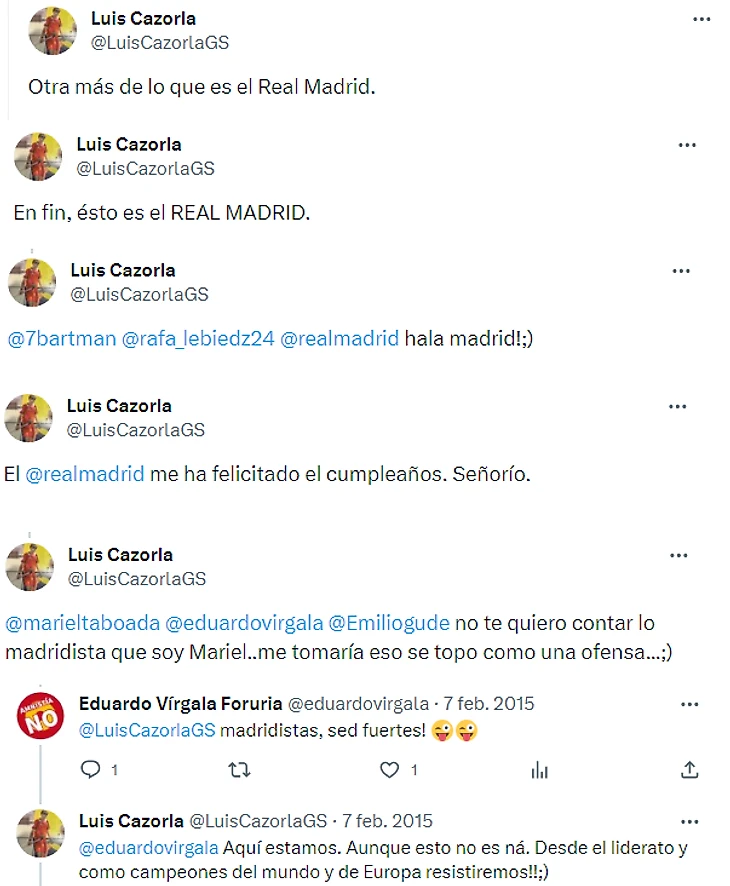 В одном из твитов Касорла признается, что уже 24 года он − официальный болельщик «Мадрида». Луис не скрывал свои клубные предпочтения.