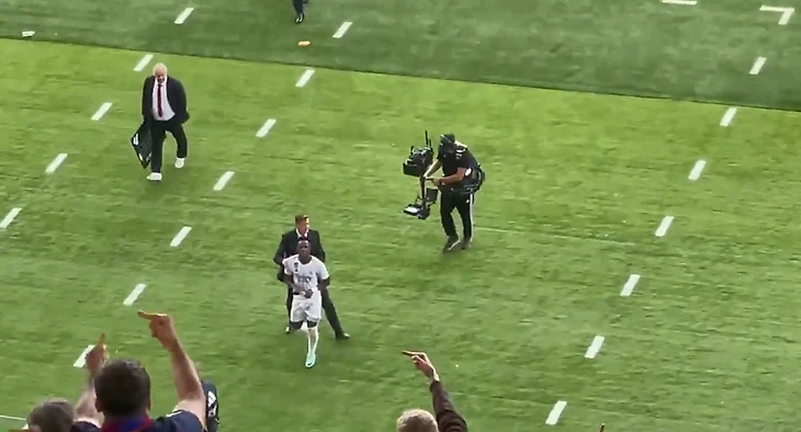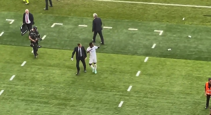 Однако даже сопровождение тренера не успокоило бразильца. Уже находясь в технической зоне он все равно победно махал трибунам.