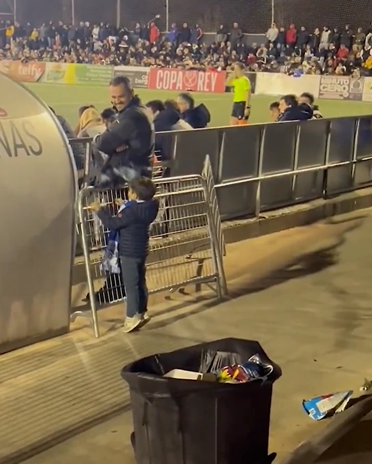 За победой своей команды в кубковом матче против «Буньоля» японец наблюдал со скамейки запасных. Ограждение на скромном стадионе небольшого городка не помешало юному фанату получить майку Такефусы.
