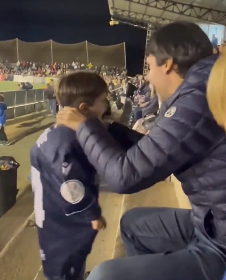 Счастливый парнишка с чувством выполненного долга вернулся к родным на трибуну.