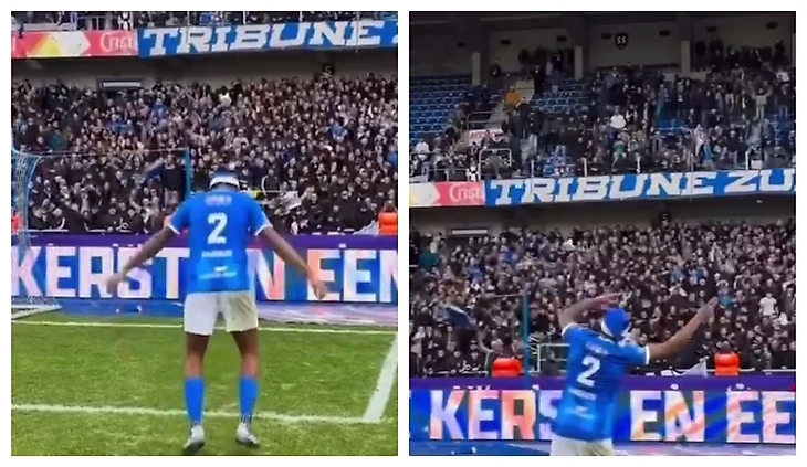 После победы в бельгийский boxing day над «Антверпеном» (2:0) американский защитник «Генка» Марк Маккензи надел праздничную шапочку и устроил яркий перфоманс с фанатами.