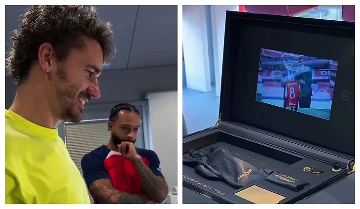 На 37-й минуте того матча француз сравнял счет – 2:2. После этого «Атлетико» объявил его лучшим бомбардиром в истории клуба.В честь этого события партнер Гризманна по «Атлетико» Мемфис Депай подготовил уникальный подарок для француза.