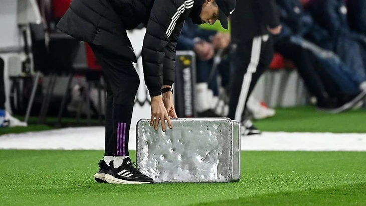 В Мюнхене немец сидит на чемоданах, теперь не только фигурально, но и буквально. Почти всю игру с «РБ» Тухель смотрел, сидя на металлическом кейсе.