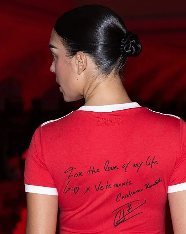 Джорджина на показе Vetements: вышла в платье с фамилией Роналду и его автографом на спине