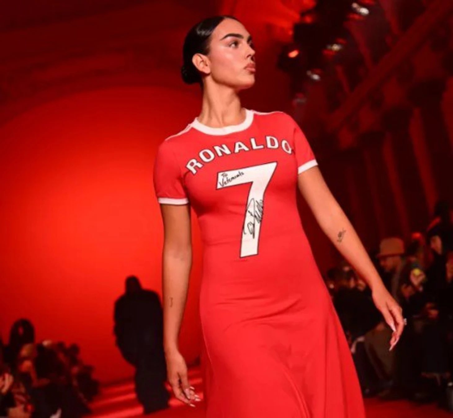 Джорджина удивила мир моды необычным платьем на показе Vetements в Париже. В пятницу девушка Криштиану Роналду прошлась по подиуму в наряде, оформленном в виде именной футболки португальца.