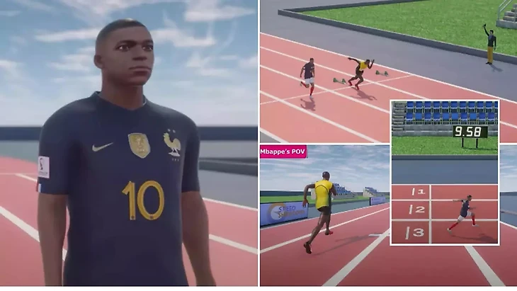 Кто быстрее? Смотрим 3D-симуляцию забега на 100 метров между Килианом Мбаппе и Усейном Болтом📹