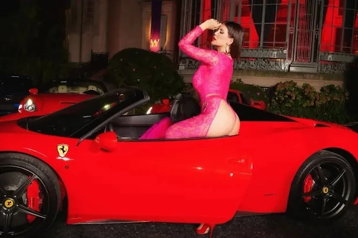 Ванда позировала в розовых в розовом боди перед двумя автомобилями Ferrari и поделилась снимками в Инстаграм. Подписчики были в восторге