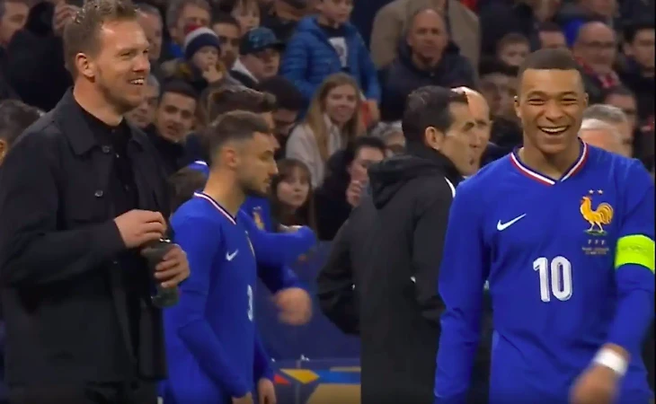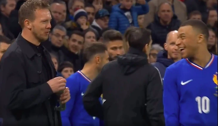 Впечатляющий эпизод с участием будущих одноклубников (рискнем) не оставил без внимания Килиан Мбаппе, обсудив его с наставником немецкой сборной Юлианом Нагельсманном.