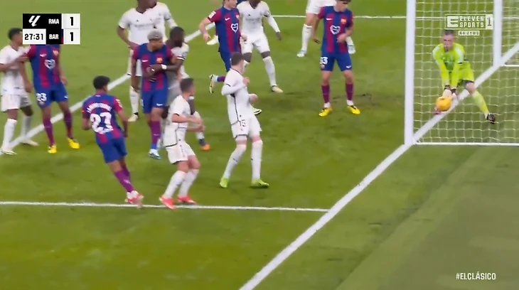 Он среагировал с опозданием и парировал рикошет от Федерико Вальверде, но сперва казалось, что мяч пересек линию.