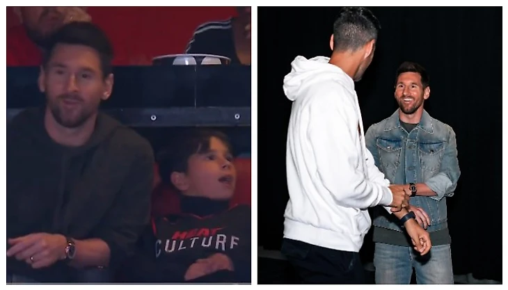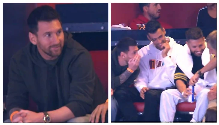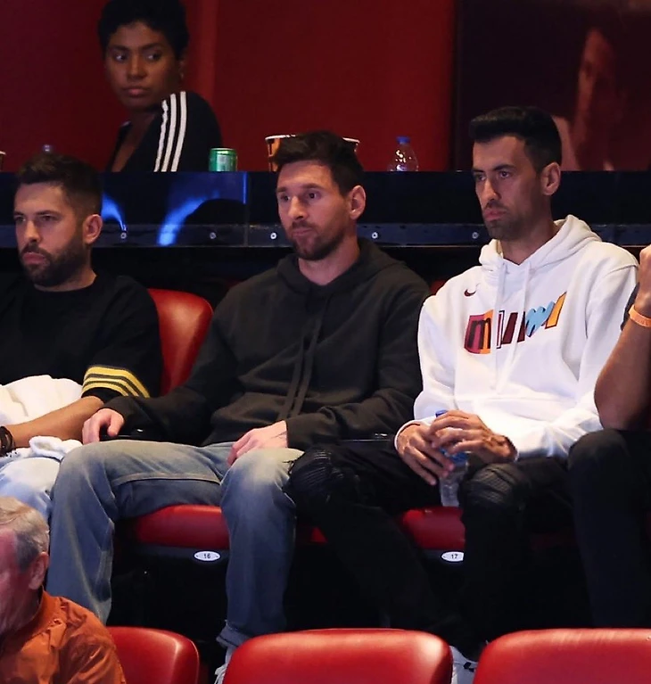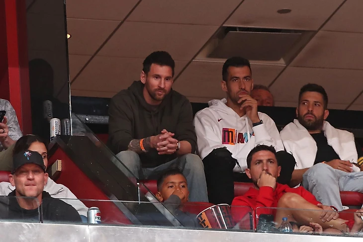 Четыре легенды «Барсы», выступающие за «Интер Майами», собрались вместе, чтобы посмотреть четвертую игру первого раунда серии плей-офф между «Майами Хит» и «Бостон Селтикс» на стадионе «Касейя Центр».