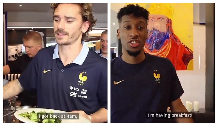 Много-много яиц, креветки и даже паста: игроки сборной Франции показали, что предпочитают есть на завтрак