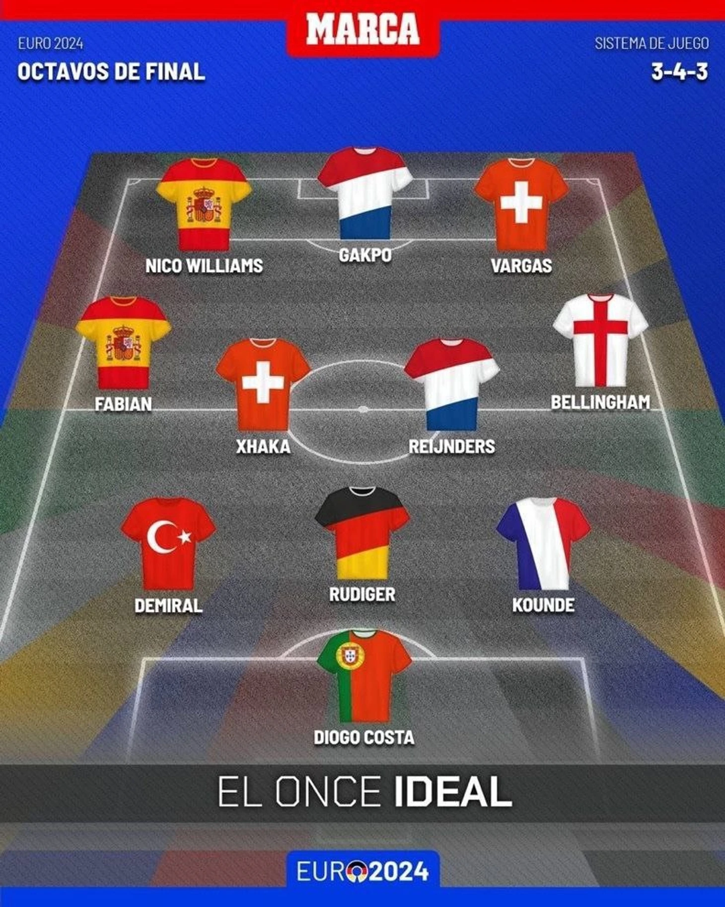 Испанское издание Marca представила символическую сборную по итогам 1/8 финала Евро.