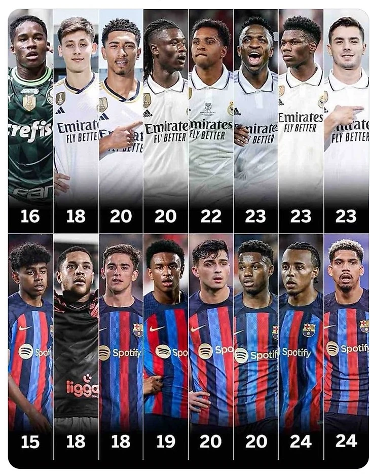4) У РМ не поставили еще Вальверде, Милитао, Мбаппе (тоже все еще молодые игроки которые могут спрогрессировать ), у Барсы тоже не поставили Кубарси (видимо статья прошлогодняя), но все же 3 против 1
