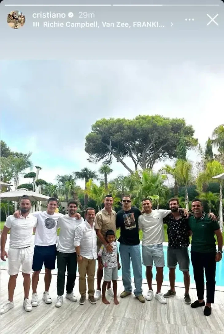 Роналду опубликовал снимок с группой друзей, и Далот был среди них. Судя по всему, они наслаждались частным концертом Ричи Кэмпбелла (на фото он между футболистами).