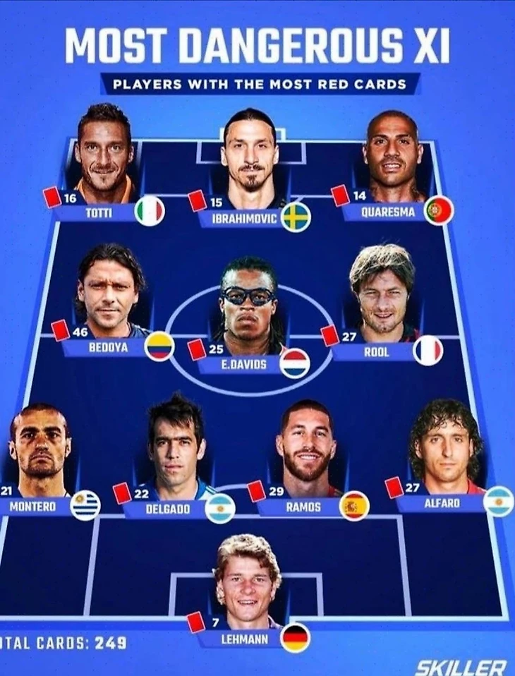 259 красных карточек🟥: собрали самых жестких нарушителей в истории футбола в символическую сборную⛔