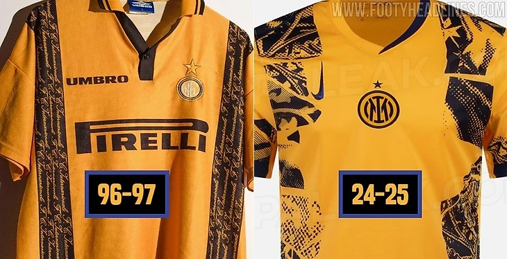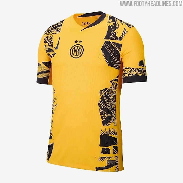 Основным цветом был выбрал «University Gold» в сочетании с перевернутым логотипом Nike и гербом «Интера» по центру груди.