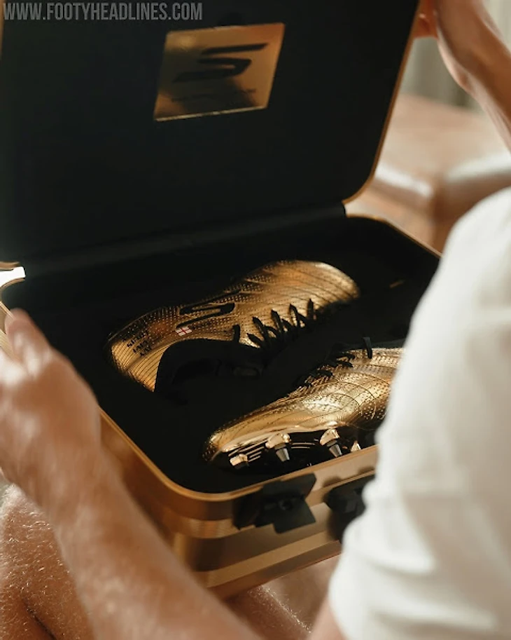 Кейн – амбассадор Skechers. Бренд разработал специальные бутсы, чтобы поздравить форварда с получением заслуженной награды. Основной цвет модели, конечно, золотой.