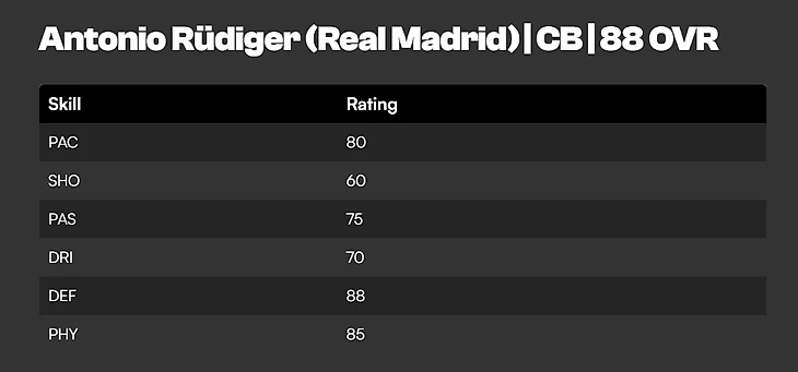Антонио Рюдигер, «Реал Мадрид» - рейтинг 88
