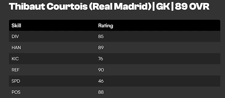 Тибо Куртуа, «Реал Мадрид» - рейтинг 89