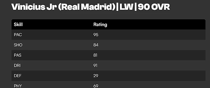 Винисиус, «Реал Мадрид» - рейтинг 90