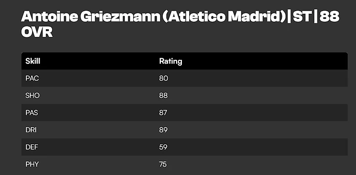 Антуан Гризманн, «Атлетико» - рейтинг 88