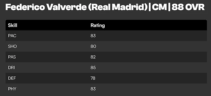 Феде Вальверде, «Реал Мадрид» - рейтинг 88