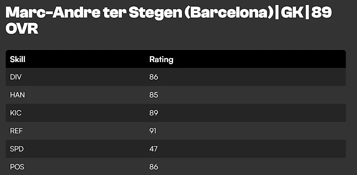 Марк-Андре тер Стеген, «Барселона» - рейтинг 89