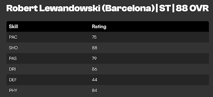 Роберт Левандовски, «Барселона» - рейтинг 88
