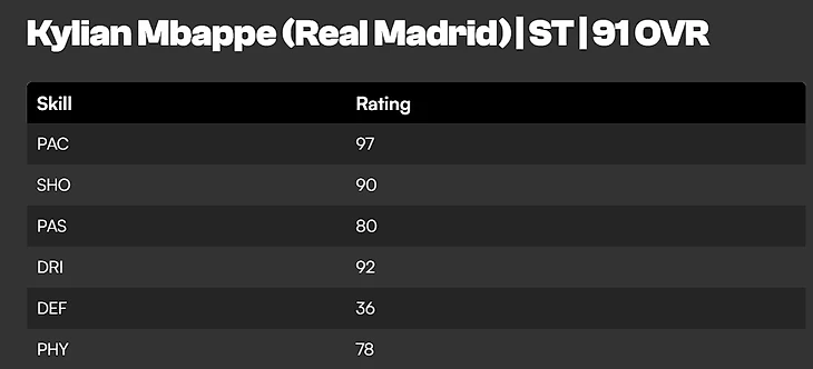 Килиан Мбаппе, «Реал Мадрид» - рейтинг 91