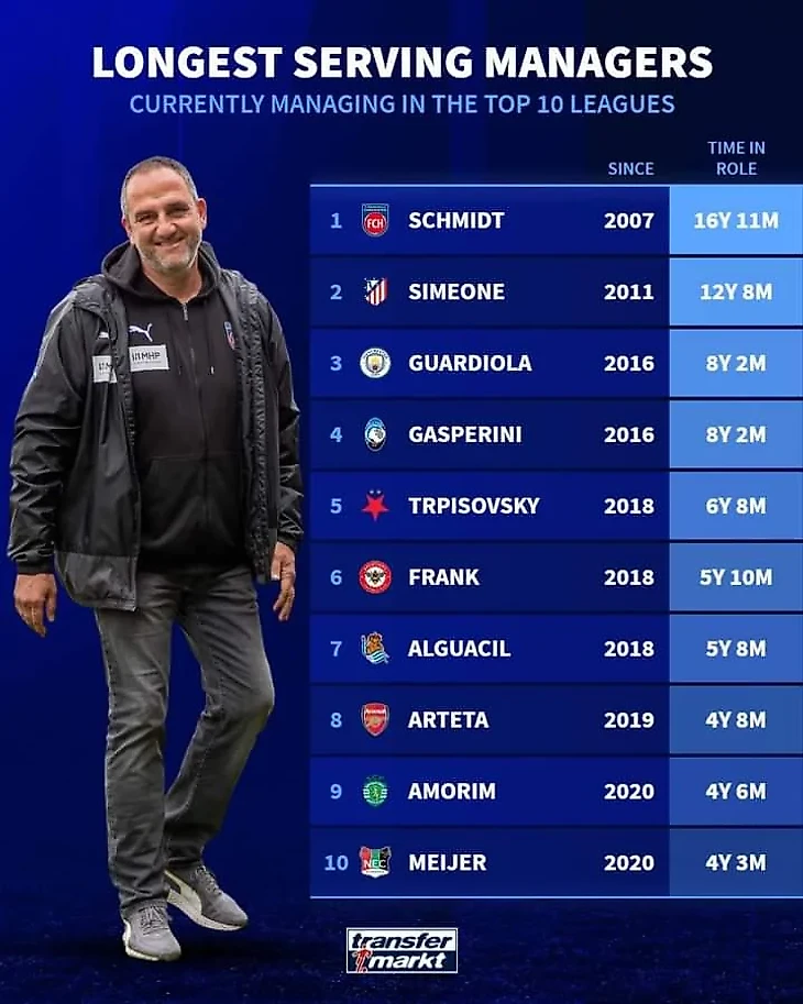 Как подтверждение − только два тренера в топ-10 лиг могут похвастаться работой с одной и той же командой более чем десять лет. И вы, конечно же, уже знаете фамилии обоих − это Франк Шмидт из «Хайденхайма» и Диего Симеоне из «Атлетико». Первый целых 16 (!!) лет работает с немецким клубом и после долгих попыток подняться из второго дивизиона в Бундеслигу наконец сделал это.