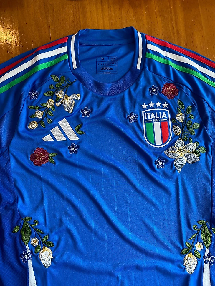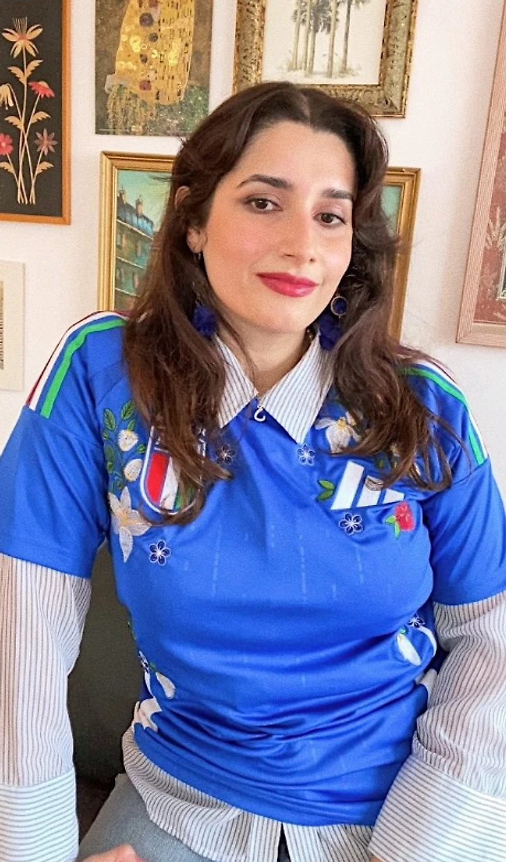 Знакомьтесь – Диана Аль Шаммари. Девушка создает кастомные майки футбольных клубов и сборных. Диана добавляет на форму вышивку, обычно в виде цветов. На этой фотографии девушка демонстрирует одну из своих работ – футболку сборной Италии с авторской вышивкой: