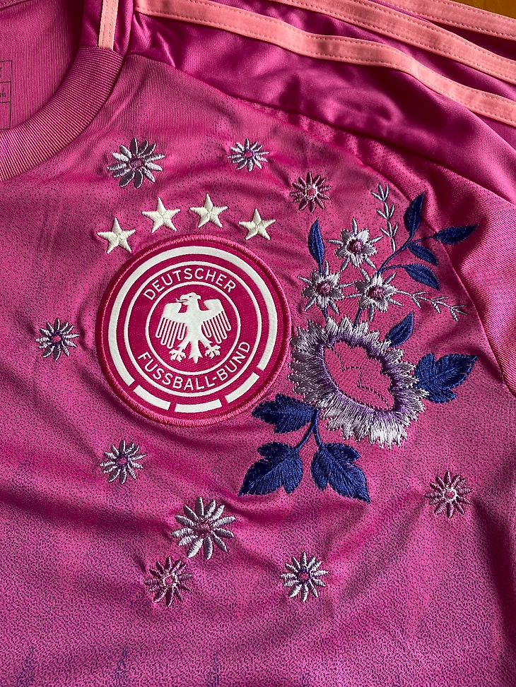 Для украшения футболки бундестим девушка выбрала васильки – национальный цветок и символ Германии.