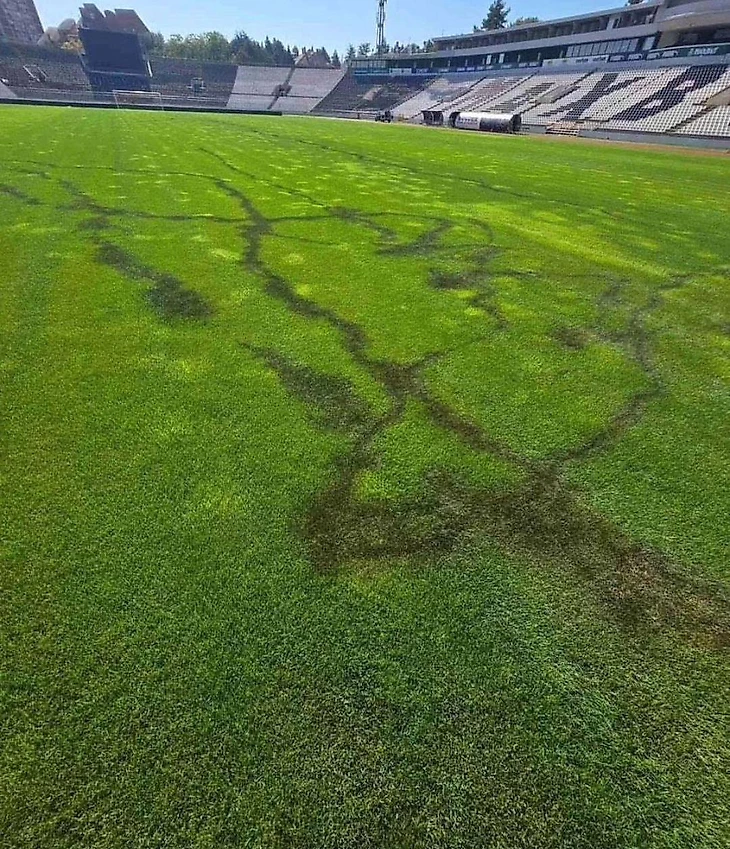 Подожгли газон и разбросали стекло: вандалы проникли на стадион «Партизана» перед дерби с «Црвеной Звездой»📹