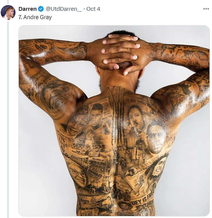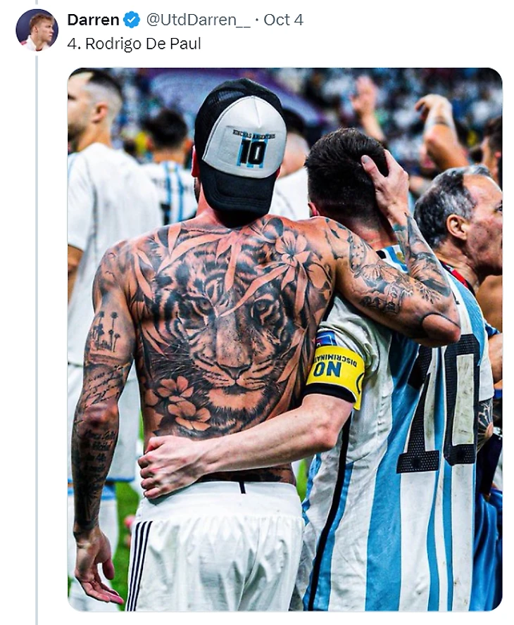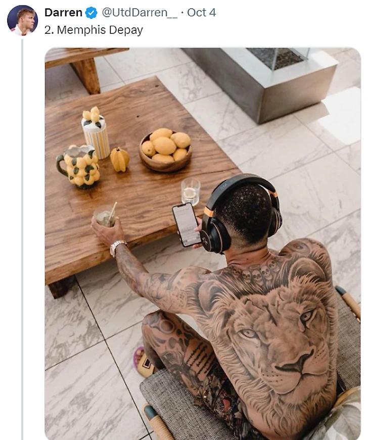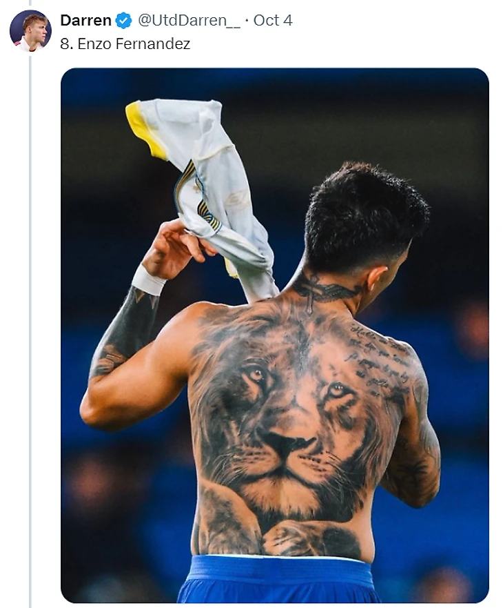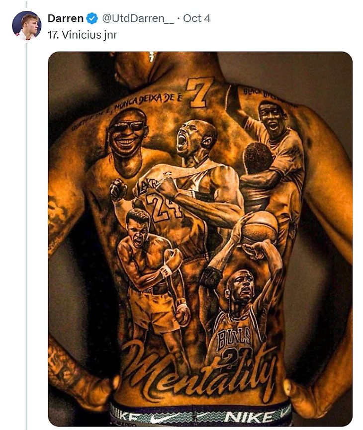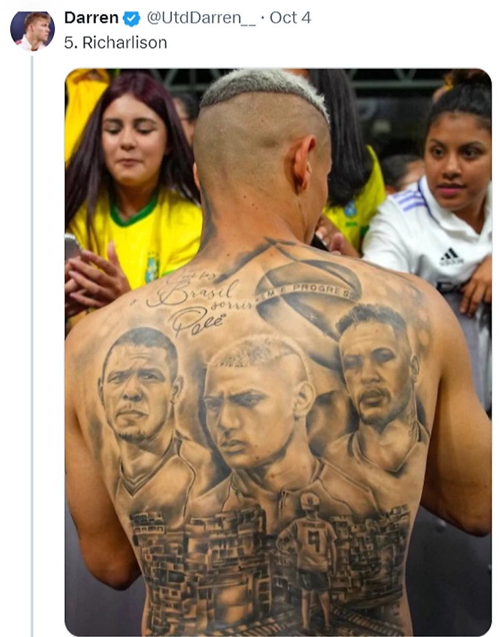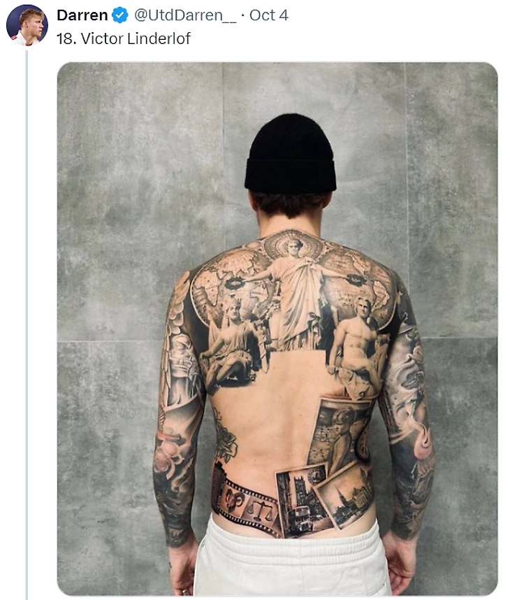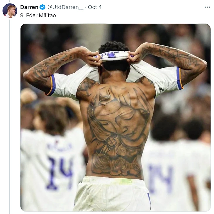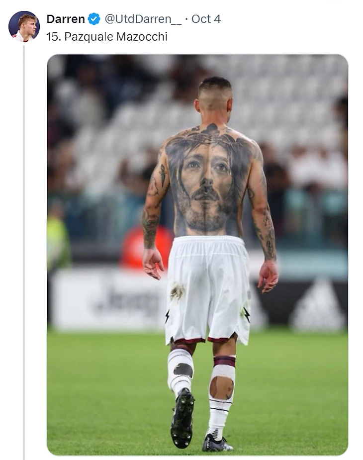 Пользователь X под ником @UtdDarren__ составил тред футболистов с самыми крутыми татуировками на спине. Выяснилось, что игроки предпочитают набивать морды львов, лица кумиров, лики святых и свои собственные портреты.