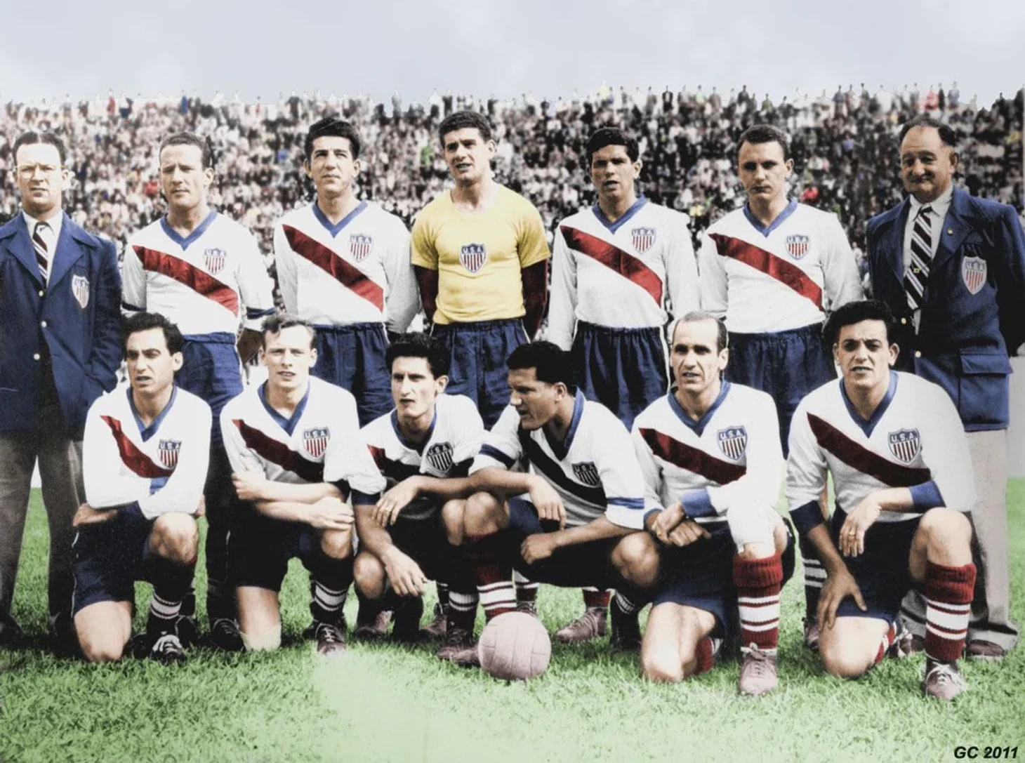 Именно в этой футболке американцы вышли на свой главный в истории матч по соккеру. На ЧМ-1950 в Бразилии США довелось помериться силами с Англией.