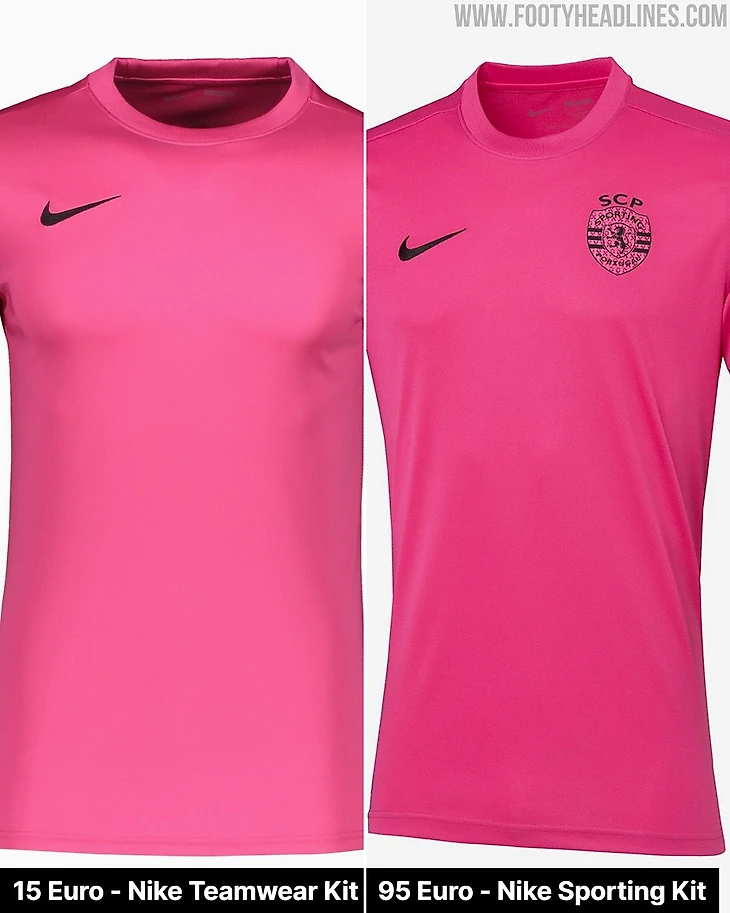 Слева − тренировочная майка из коллекции Teamwear за 15 евро, справа − джерси для тренировок лиссабонского «Спортинга», но уже за 95 евро. В чем разница? Только в логотипе клуба.