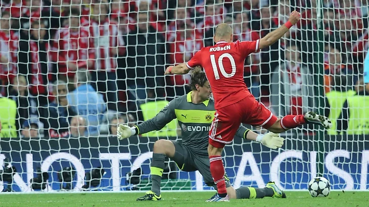 2. Арьен Роббен в финале ЛЧ-2013. Главное немекцое дерби в главном матче евросезона. Вингер «Баварии» быстрее всех разобрался в суматохе, но не идеально пробил. Тем не менее, мяч докатился до ворот и тот гол короновал мюнхенцев.