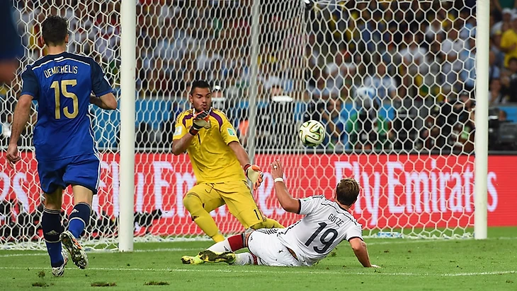 7. Марио Гетце в финале ЧМ-2014 ударом в падении принес Германии чемпионство.