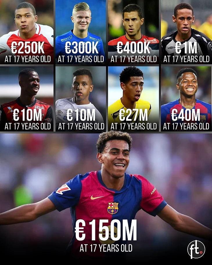 Поразительный факт: 17-летний Ямаль стоит как сумма 17-летних Мбаппе, Холанда, Азара и Неймара, помноженная на 76.