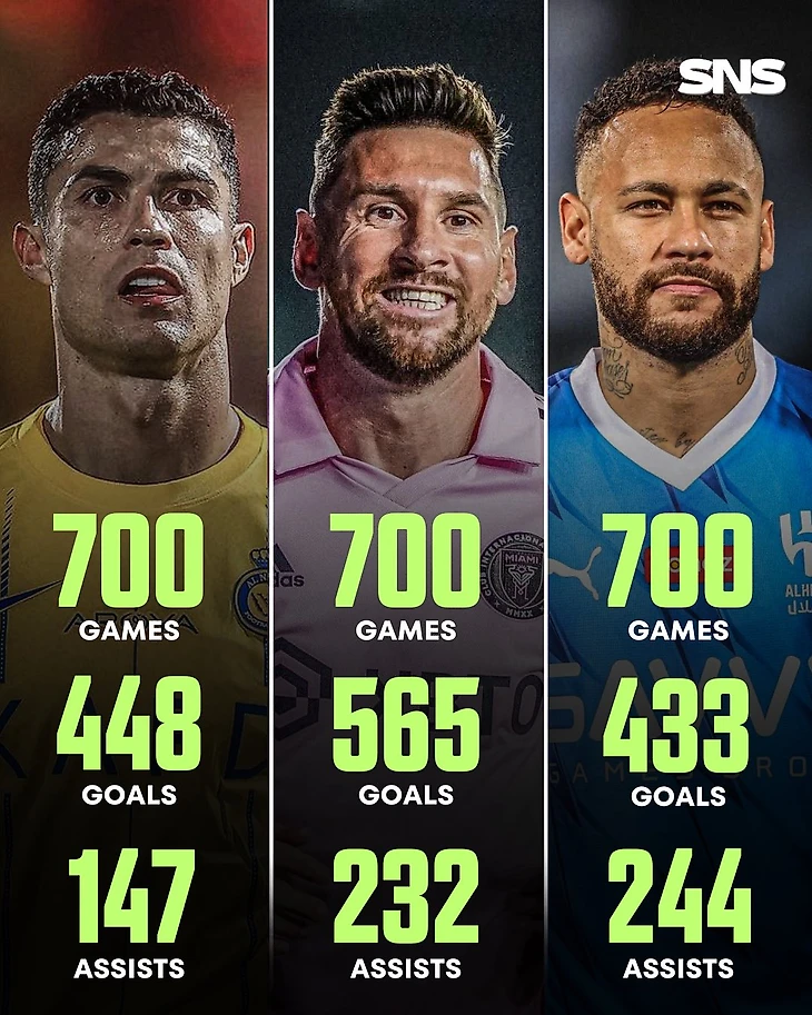 По голам у португальца было небольшое преимущество - 448 против 433. А вот по голевым передачам никакой интриги нет и подавно - 147 против 244 в пользу бразильца.