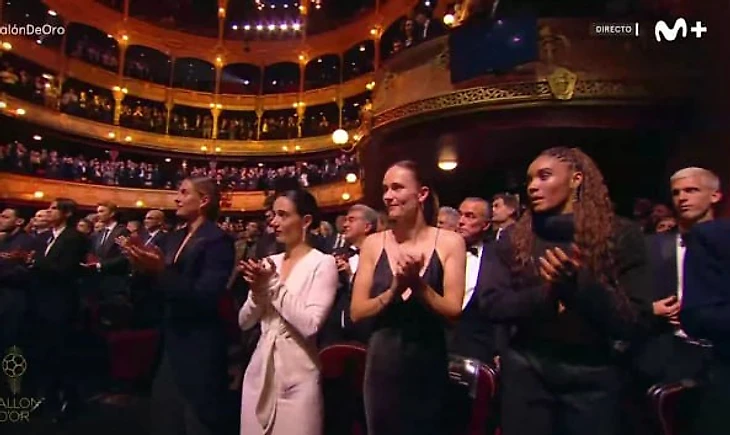 После речи футболистки сборной Испании весь зал встал и аплодировал ей. Все, кроме Родри, который прибыл на церемонию с костылями.