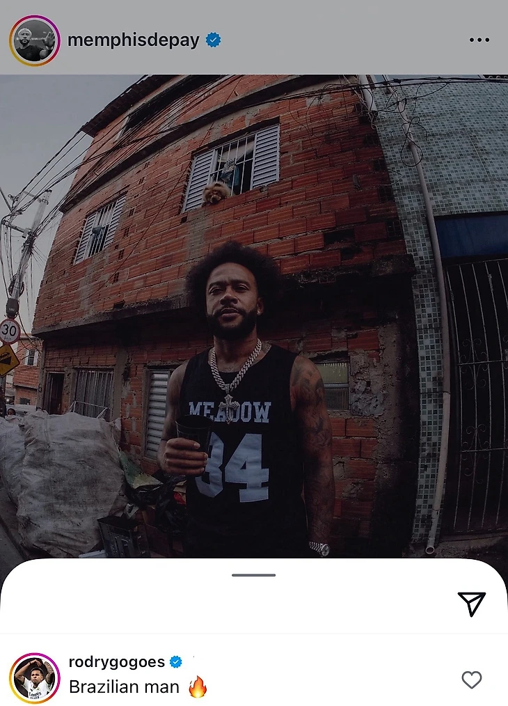 Именитые бразильцы уже записали голландца в соотечественники. Родриго из «Мадрида» написал в комментариях Депая: «Бразильский парень🔥».