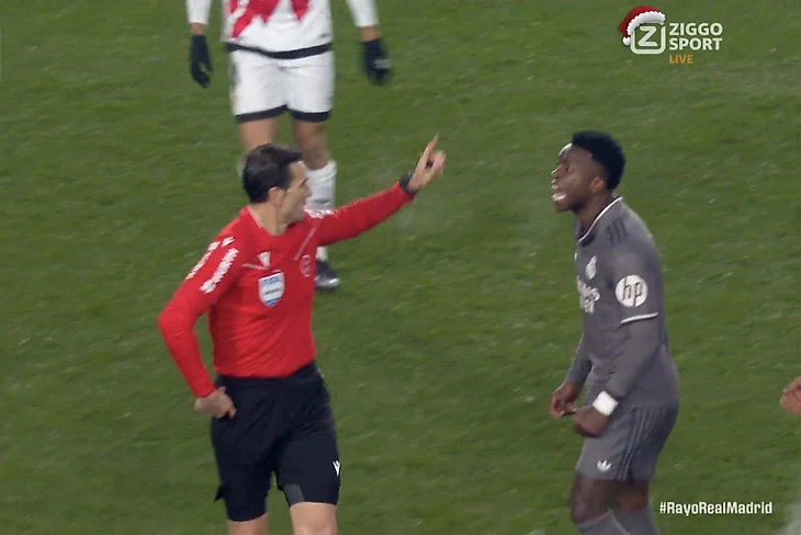 Вингер возмущался, что арбитр Хуан Мартинес Мунуэра не показал желтую игроку «Райо», который руками хватал бразильца. За споры с судьей «горчичник» получил сам Винисиус – для него это пятая карточка в сезоне, из-за переборы желтых вингер пропустит матч с «Севильей».