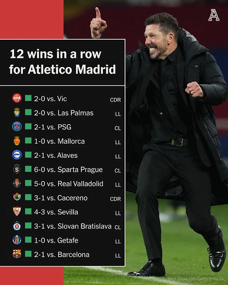 «Атлетико» практически списали из чемпионской гонки, но команда, показывающая не самую зрелищную игру, выдает впечатляющий рывок − 12 побед подряд во всех турнирах.