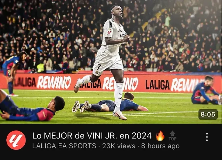 Однакотофициальный аккаунт Ла Лиги на Ютуб использовал эту же фотографию, заменив Серлота на Винисиуса Жуниора из «Реала», чтобы прорекламировать сборник хайлайтов с его участием.