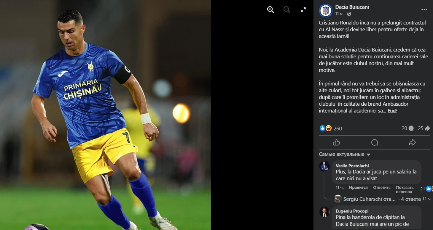 Клуб из высшей лиги Молдовы «Дачия» Буюкань обратился к Криштиану Роналду!